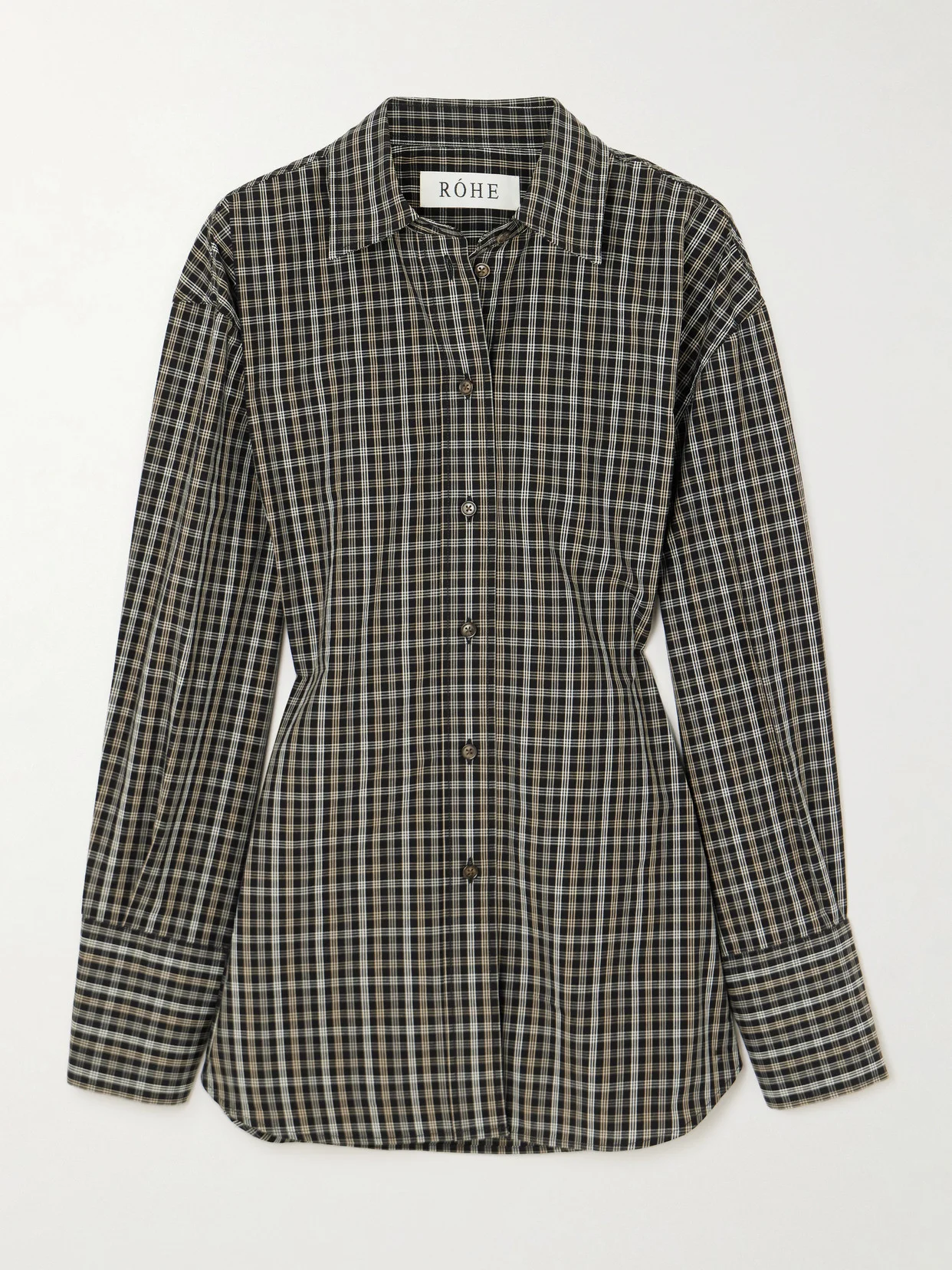 ROHE's take on the classic shirt feels sharp and modern. Cut from cotton-poplin in a checked pattern, it's designed with a fitted bodice for a more sculpted, tailored presence. Style it with relaxed trousers or a sleek skirt to emphasize the defined shape.
