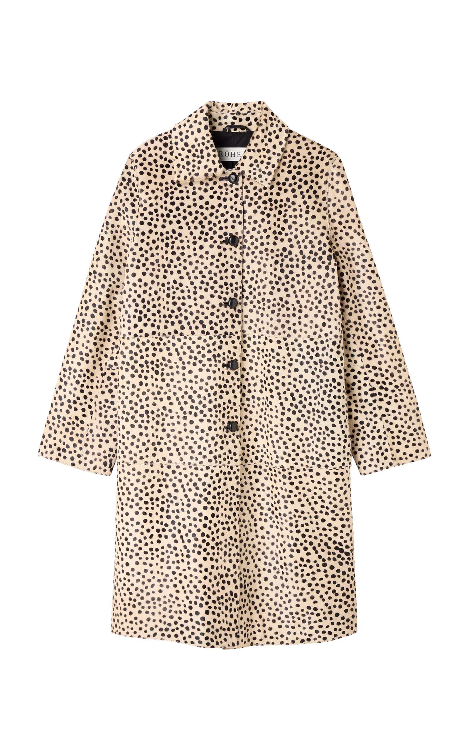 Amsterdam-based atelier Rohe offers exceptionally crafted staples in pair-with-anything neutrals that are as well-constructed as they are timeless. A statement coat crafted from cheetah-print pony hair and finished with leather-knotted button closures. Fully lined with hidden side-seam pockets, it offers a refined, structured silhouette. PRODUCT DETAILS - Resort '26 - Button fastening - Composition: 100% cow leather - Specialist clean - Imported