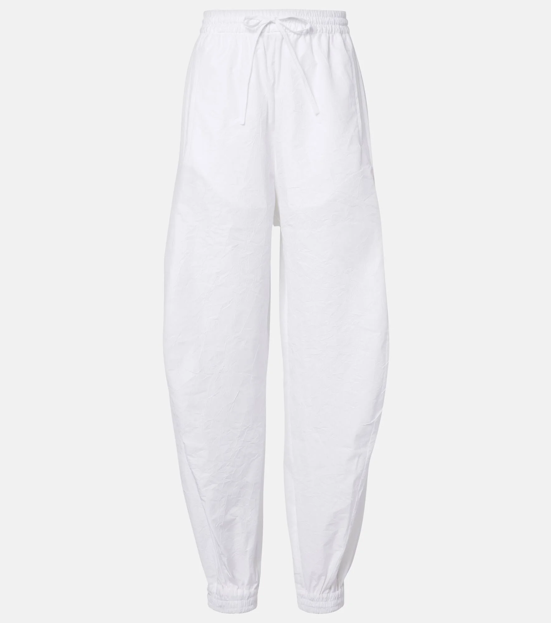 Rohe favors a multifaceted approach to design, infusing collections with elements of Dutch architecture, art, and nature. These cotton-blend barrel-leg pants feature a drawstring waist with elasticated cuffs. Product Details - Material: 75% cotton, 25% polyester - Care instructions: machine wash at 30 degrees - Made in Lithuania - Color: white - Designer color name: Optic White - Item color: white - Elasticated drawstring waist - Pockets: side slit pockets, back pocket - Cuff: elasticated - Item number: P01139968 Size & Fit - True to size - Elasticated waist - Adjustable at the waist - Non-stretchy fabric - Tapered leg - The model seen in the picture is 178cm-5'10" and wearing a size FR 34