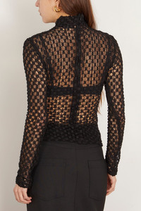 The Rohe Geometrical Lace Top is a must-have piece from their Resort 25 Collection. This top is crafted in a beautiful geometrical lace with a slim silhouette. Wear yours with trousers and heels. FIT DESCRIPTION MODEL MEASUREMENTS - Fits true to size, take your normal size - Lace top - Slim silhouette - Mock neckline - Semi-sheer - 61% cotton, 30% polyamide, 9% elastane - Emma is wearing a size 34/ 2 US - Stylist note: Bra is not included with this style - Bust: 32” - Waist: 25” - Hips: 34” - Height: 5’7”