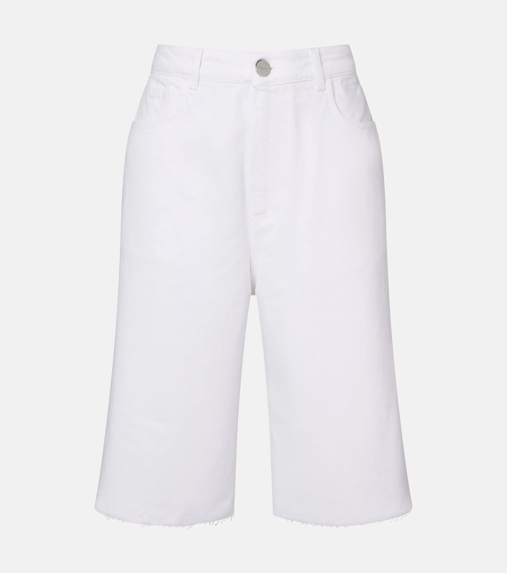 From the heart of Amsterdam, Rohe set out to create minimalist staples that defy trends and seasons. These capri jeans are crafted from pure white cotton and feature a classic five-pocket design and frayed edges. Product Details - Material: 100% cotton - Care instructions: machine wash at 40 degrees - Made in Italy - Color: white - Designer color name: Optic White - Closure: zipper fly, button fastening - Pockets: five pockets - Item number: P01160967 Size & Fit - True to size - Non-stretchy fabric - Wide-leg - Mid-rise - The model seen in the picture is 178cm-5'10" and wearing a size FR 34
