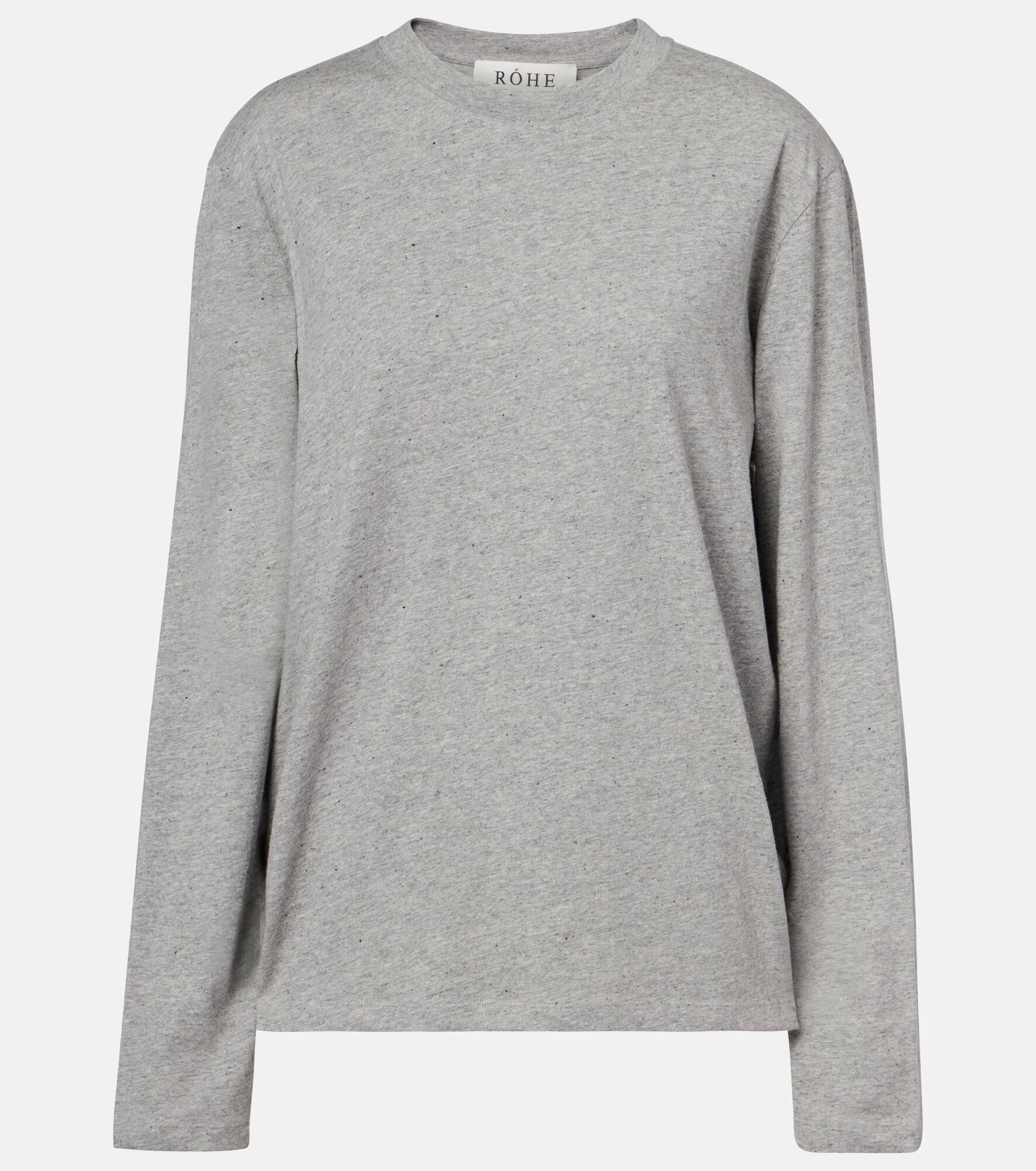 From the heart of Amsterdam, Rohe set out to create minimalist staples that defy trends and seasons. Ideal for effortless layering, this T-shirt is made from cotton jersey into a long-sleeved silhouette. Product Details - Material: 100% cotton (organic) - Care instructions: machine wash at 30 degrees - Made in Portugal - Color: grey - Designer color name: Light Grey Melange - Collar: crewneck - Item number: P01158889 Size & Fit - True to size - Dropped shoulders - Designed for a loose fit - Slightly stretchy fabric - Falls below the hip - The model seen in the picture is 178cm-5'10" and wearing a size FR 34