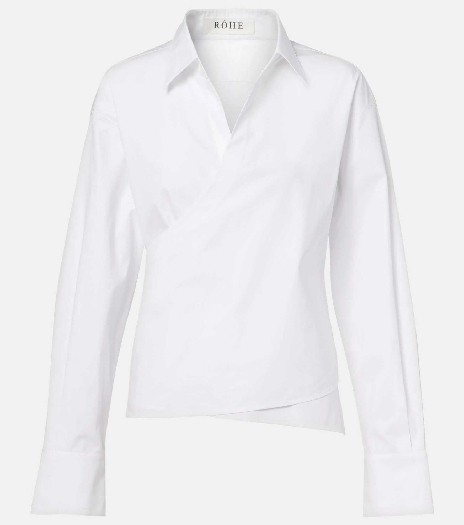 Exude timeless elegance in this shirt from Rohe. Crafted in Italy from pure cotton, the sophisticated design boasts a wrapped-front silhouette with self-tie closures. Product Details - Material: 100% cotton - Care instructions: hand wash cold - Made in Italy - Color: white - Designer color name: Optic White - Collar: classic (Straight point) - Cuff: buttoned - Closure: self-ties - Item number: P01140032 Size & Fit - True to size - Dropped shoulders - Cinched waist - Non-stretchy fabric - Falls to the hip - The model seen in the picture is 178cm-5'10" and wearing a size FR 34