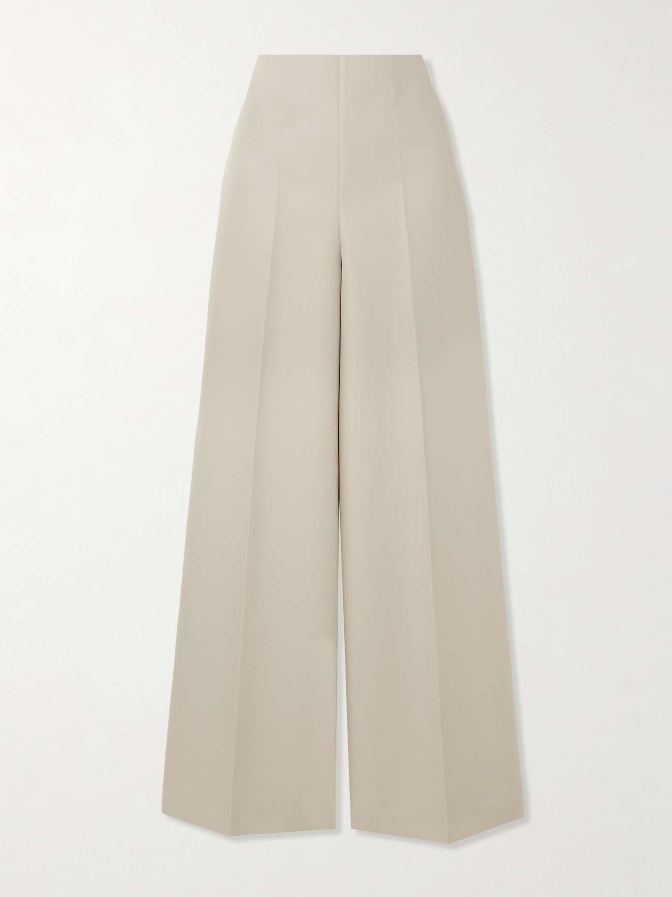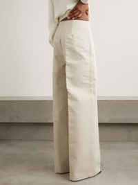 EDITORS'NOTES ROHE's pants are designed with sweeping 'palazzo'-inspired wide-legs. They're tailored from cotton-twill and have crisp pressed creases that trace from the flat high-rise front through the cuffs. The soft sand shade is endlessly versatile. SIZE & FIT Model measurements: - Fits true to size, however those who are between sizes should take the smaller size - High-rise, designed for a wide-leg fit - Particularly long in length - Mid-weight, non-stretchy fabric - Model is 180cm/ 5'11" and is wearing a FR 36 - Bust: 80cm/ 31.5" - Waist: 65cm/ 25.5" - Hip: 89cm/ 35" DETAILS & CARE - Sand cotton-twill - Concealed zip fastening at side - 100% cotton - Dry clean