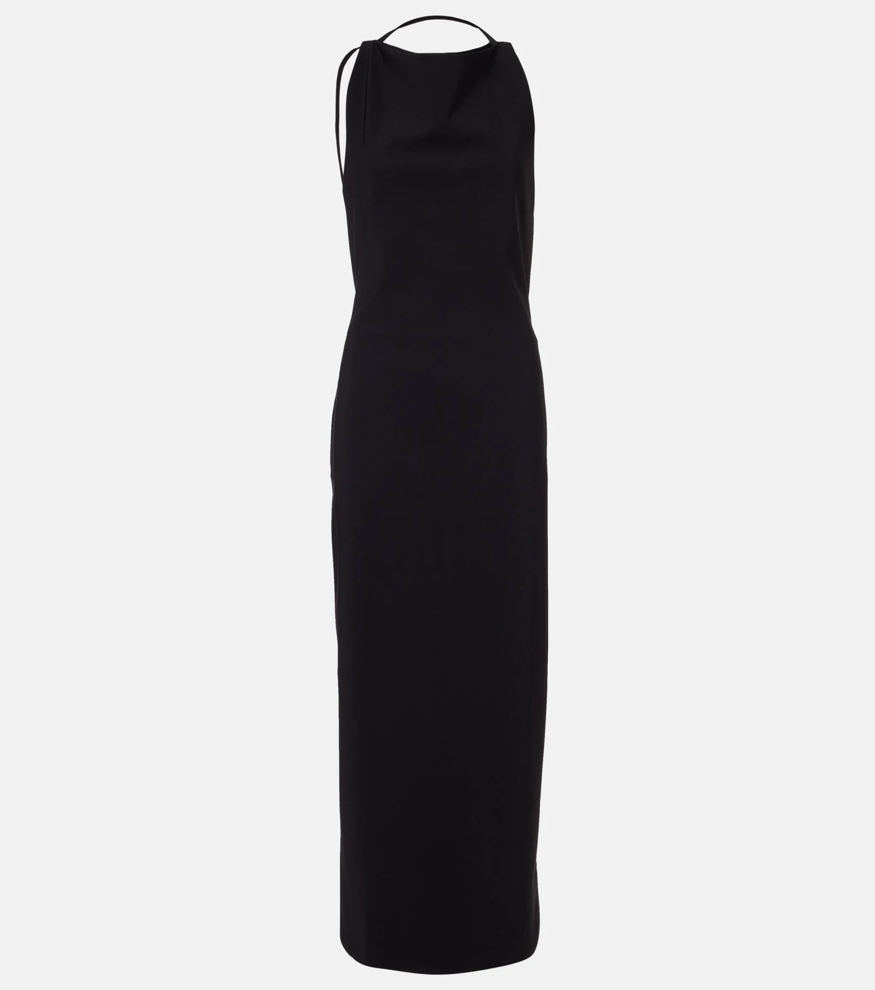 This open-back crepe maxi dress from Rohe is a striking choice for elegant evenings. Delicate halterneck ties wrap around the neck and shoulder, leading to a dramatic open back. Product Details - Material: 74% polyamide (recycled), 26% elastane - Care instructions: machine wash at 30 degrees - Made in Portugal - Designer color name: Black - Item color: black - Closure: invisible zipper, zipped side - Hem: straight - Short vent - Item number: P01103211 Size & Fit - True to size - Low back - Cinched waist - Non-stretchy fabric - slit length 51cm-20" - The model seen in the picture is 178cm-5'10" and wearing a size FR 34