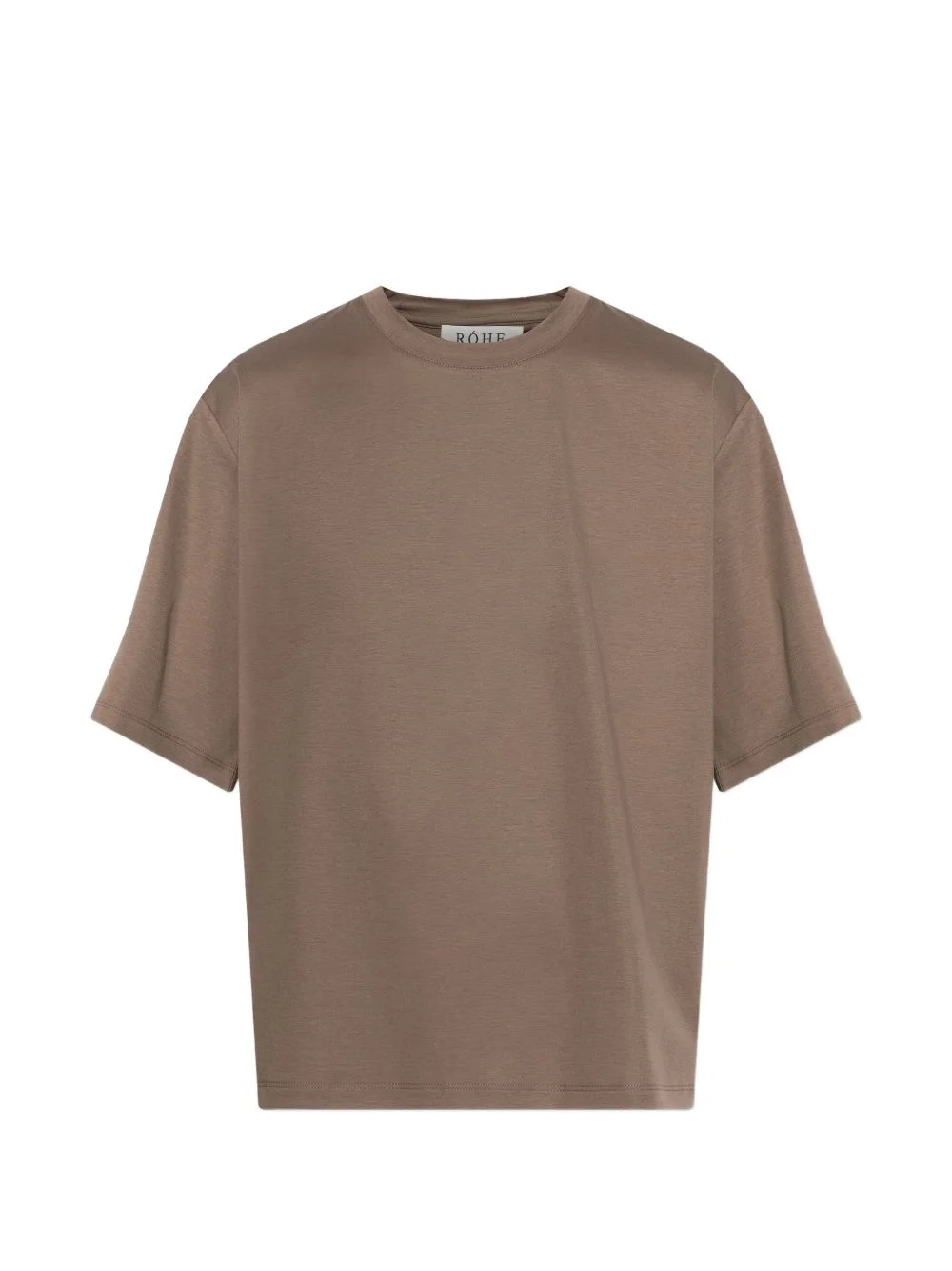crew-neck short-sleeve T-shirt Highlights - Taupe brown - Crew neck - Short sleeve Imported Composition Cotton 64%, Modal 30%, Silk 6% Washing instructions Read Manufacturer Guidelines