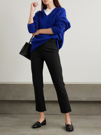 Our ROHE edit is the perfect place to find elevated staples. These pants are made from stretch recycled-scuba - the supple textile enhances the sharpness of the tapered legs. Ballet flats and mules will complement the ankle-grazing length. Size & Fit - Fits true to size, however those who are between sizes should take the smaller size - High-rise, designed for a slim fit - Cropped length - Mid-weight, slightly stretchy fabric - Model is 177cm/ 5'10" and is wearing a FR 36 Model measurements: - Bust: 85cm/ 33” - Waist: 66cm/ 26” - Hip: 92cm/ 36” Details & Care - Black stretch recycled-scuba - Concealed zip fastening along side - 74% recycled polyamide, 26% elastane - Machine wash or dry clean