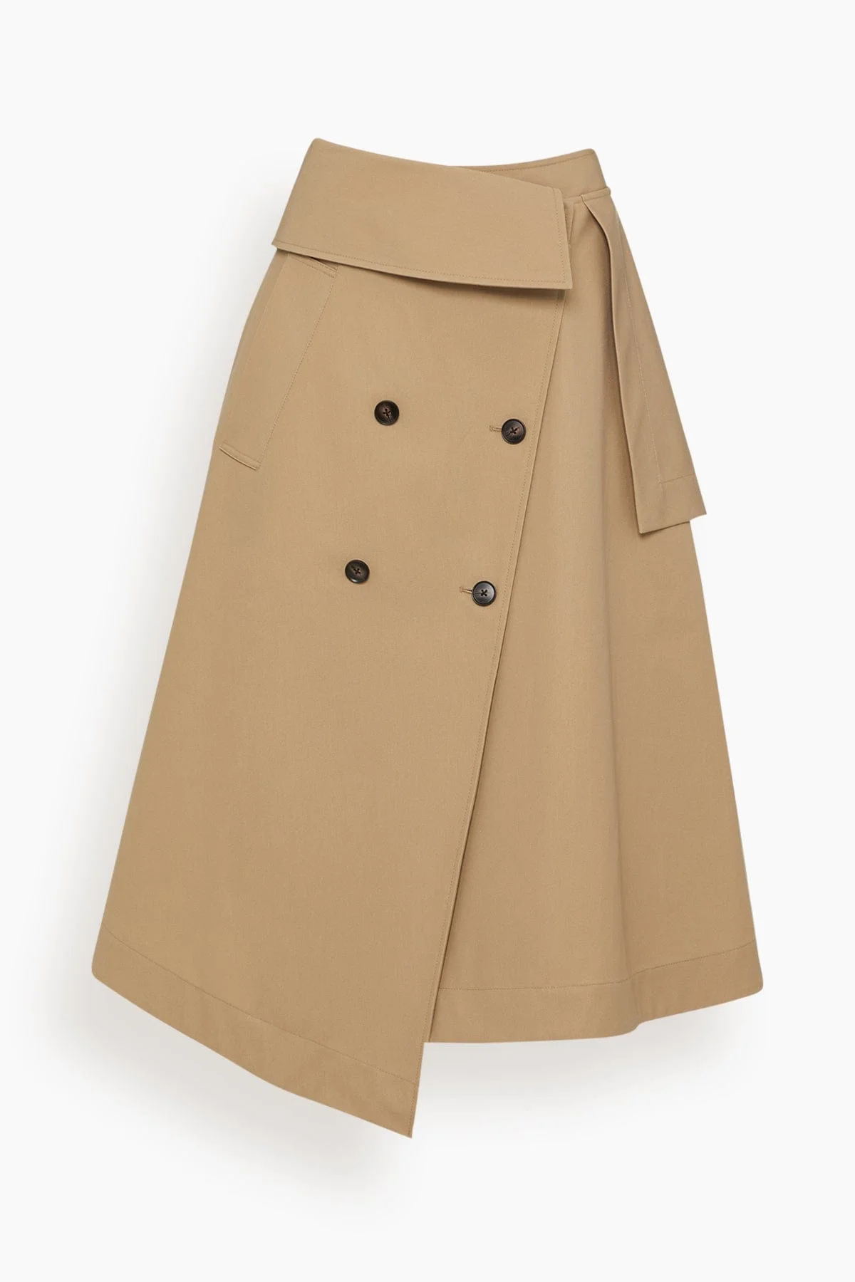 The Rohe Deconstructed Trench Skirt is a must-have piece from their Resort 26 Collection. This midi skirt mimics a trench coat with a button front in structured Japanese cotton canvas. Wear yours with a sweater and flats. - Midi length - A-line silhouette - Button front - Asymmetrical hemline - Foldover waistline - 100% cotton
