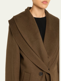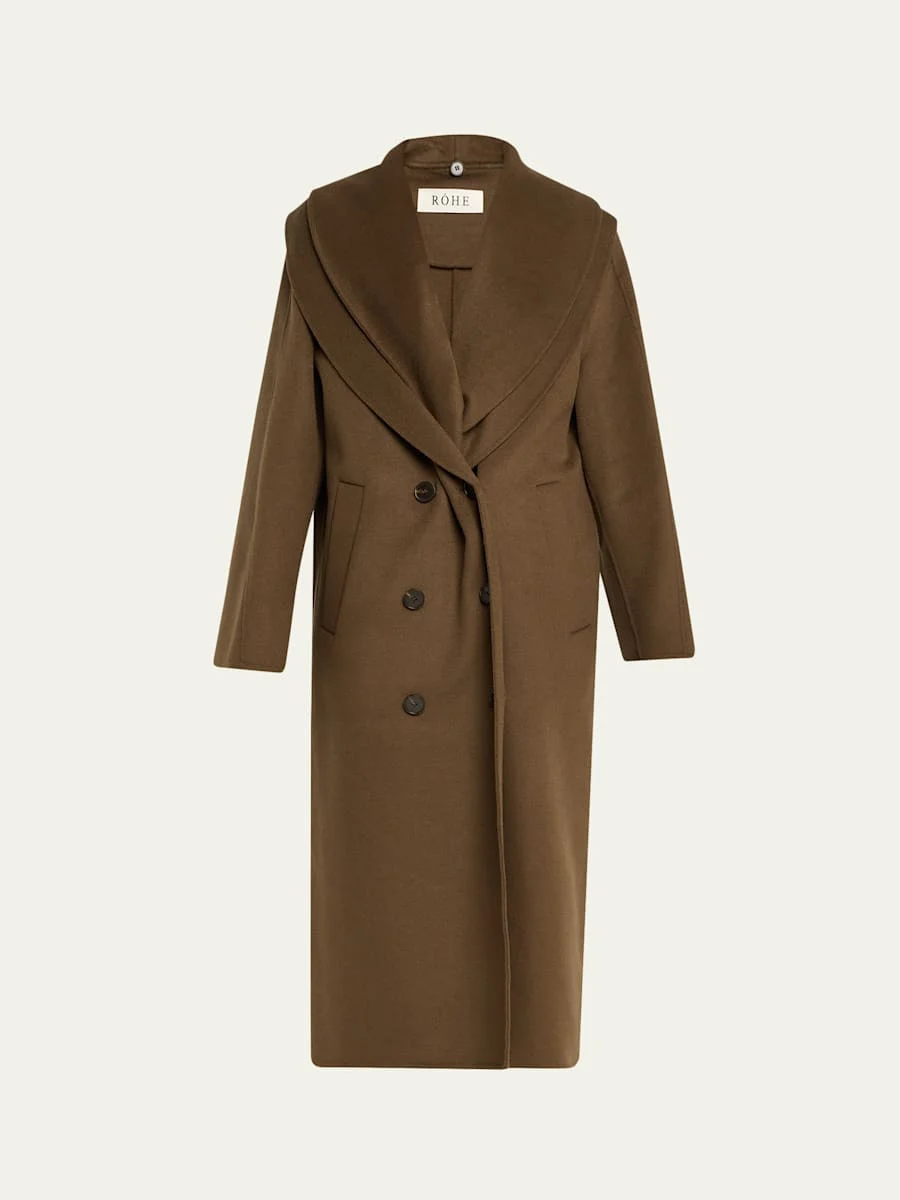Crafted from doubleface wool, this Rohe coat is adorned with a detachable scarf for ample warmth and comfort. Shawl collar Doublebreasted front Long sleeves Side pockets Classic fit Full length Buttonfront Wool Hand wash or dry clean Made in Italy