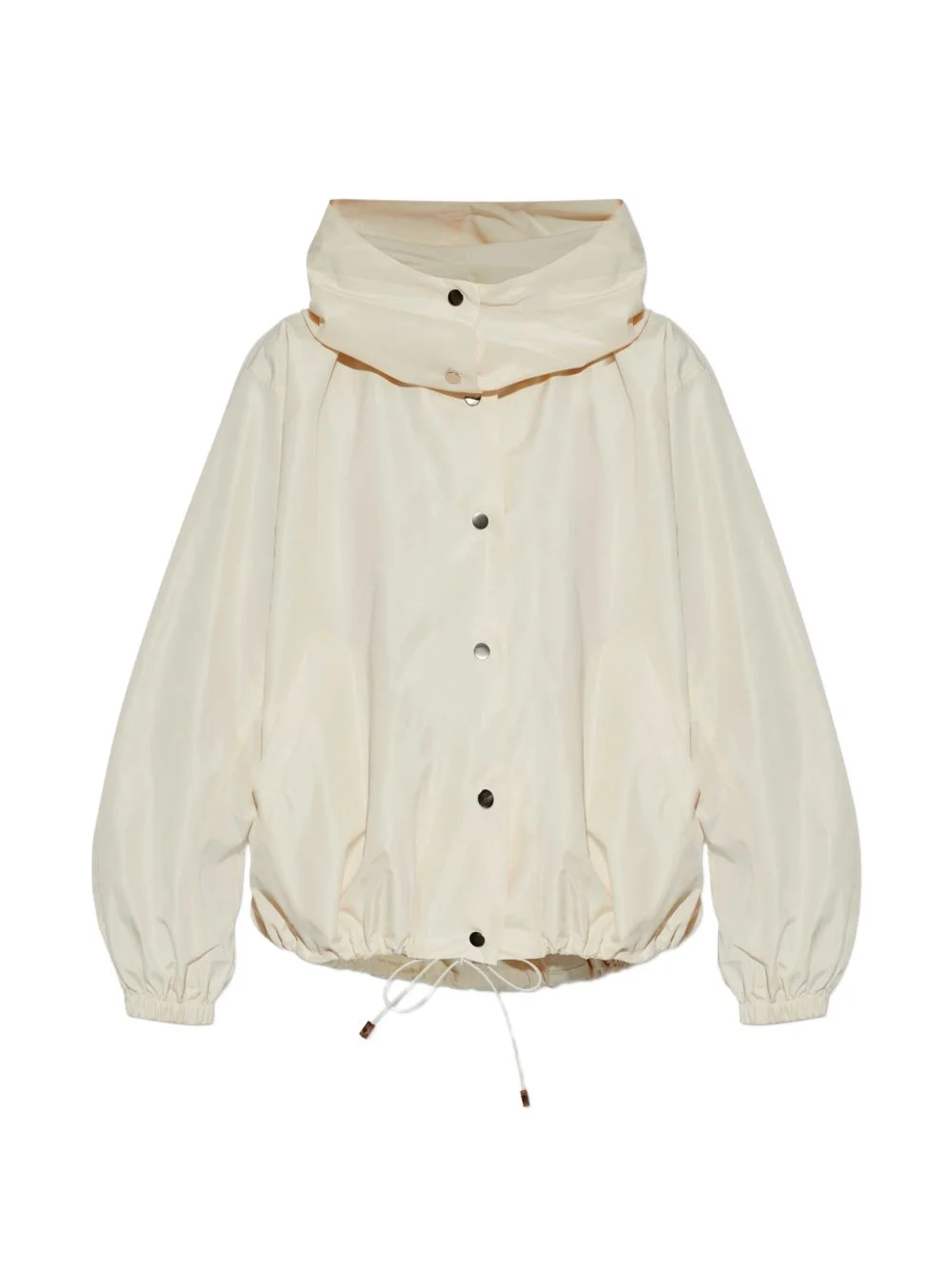 drawstring hooded jacket Highlights - Beige - Button fastening - Drawstring hem - Hood - Long sleeves - Elasticated cuffs Imported Composition Polyester 75%, Silk 25% Washing instructions Read Manufacturer Guidelines