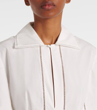 This shirt from Rohe is made from crisp cotton poplin and features contrast embroidery above the sleeves and hem. The design has elbow-length sleeves, an A-line skirt silhouette, and a classic collar. Product Details - Material: 100% cotton - Care instructions: hand wash - Made in China - Designer color name: Optic White - Item color: white - Item number: P01062400 Size & Fit - True to size - Cinched waist - Non-stretchy fabric - The model seen in the picture is 178cm-5'10" and wearing a size FR 34