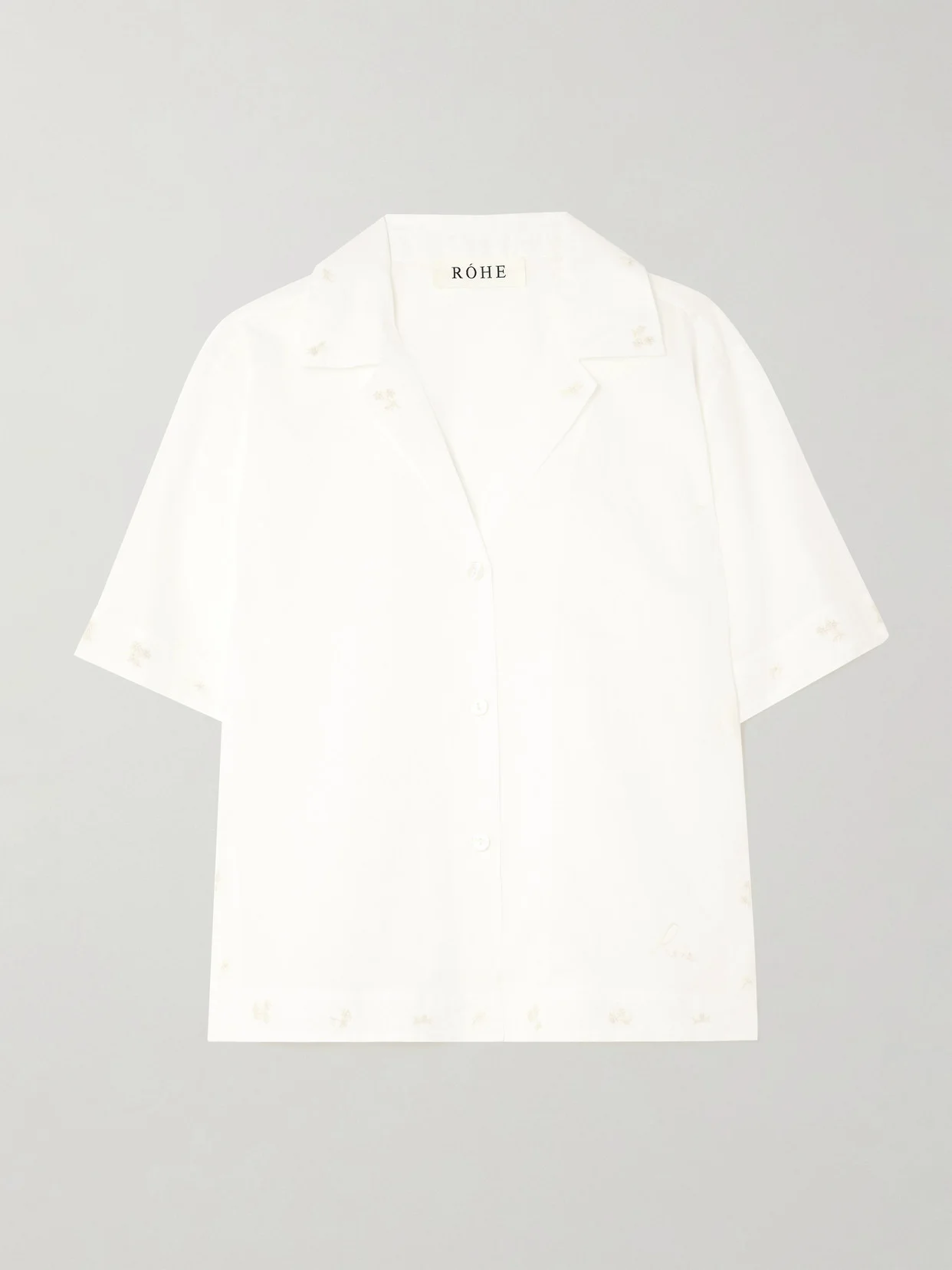 ROHE's shirt offers the perfect balance of elegance and ease. It's crafted from silk-organza that's slightly sheer and has a relaxed camp collar. Wear yours with a tonal skirt or pants.