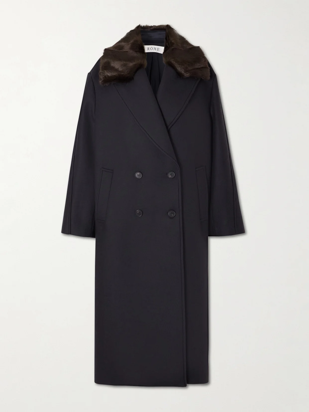 EXCLUSIVE AT NET-A-PORTER. ROHE's 'Ezra' coat is as chic as outerwear gets. Tailored from wool-blend, it has a relaxed, double-breasted shape with tactile plush fabric along the collar.