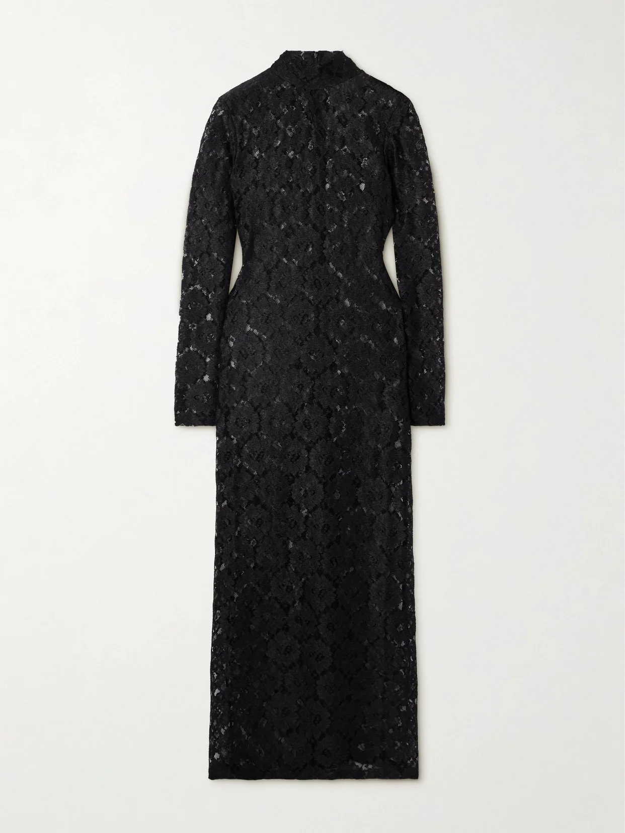 ROHE's dress is a stunning choice for a candlelit dinner or cocktail party. It's made from lace that reveals hints of skin between each floral and has a high turtleneck to balance the sheerness. Style yours with a slip or full briefs for different occasions.