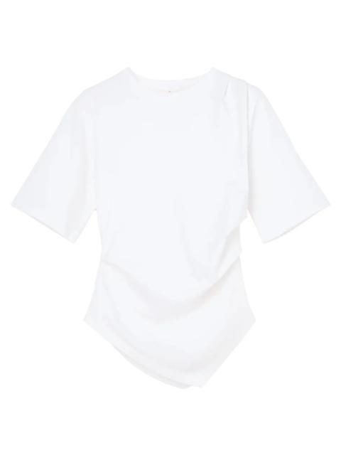 The Foulard Silk Top in Cream by Rohe is an elegant, draped blouse crafted in purse silk featuring long sleeves and a sleeve style scarf that can be wrapped around the neck for a scarf effect. - 100% Silk - The model is 179cm and is wearing a size EU 36