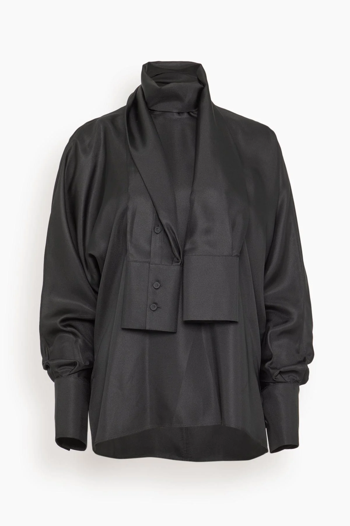 The Rohe Foulard Silk Top will be in your wardrobe for years to come. This silk top features a scarf style neckline with beautiful draping. Wear yours with trousers and flats. FIT DESCRIPTION MODEL MEASUREMENTS - Fits true to size, take your normal size - Silk top - Draping - Scarf neckline - 100% silk - Rayna is wearing a size 34/ 2 US - Bust: 34” - Waist: 24” - Hips: 32” - Height: 5’8.5”