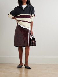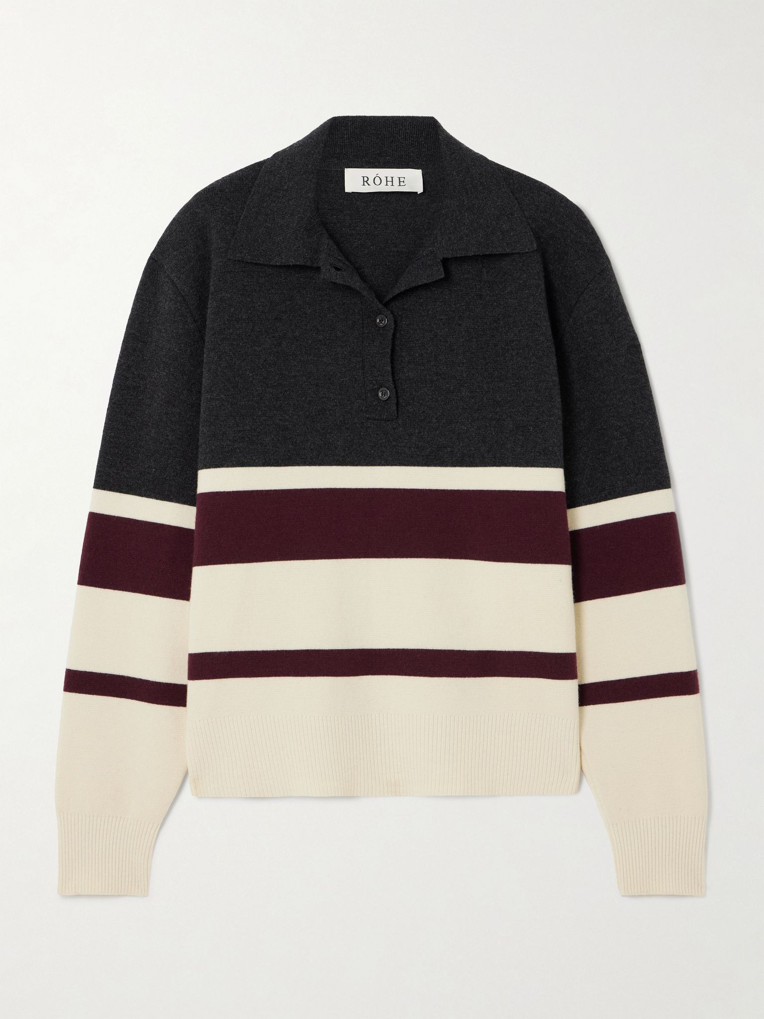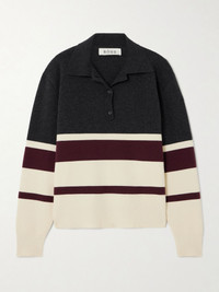 Oversized striped wool and cashmere-blend polo sweater Charcoal