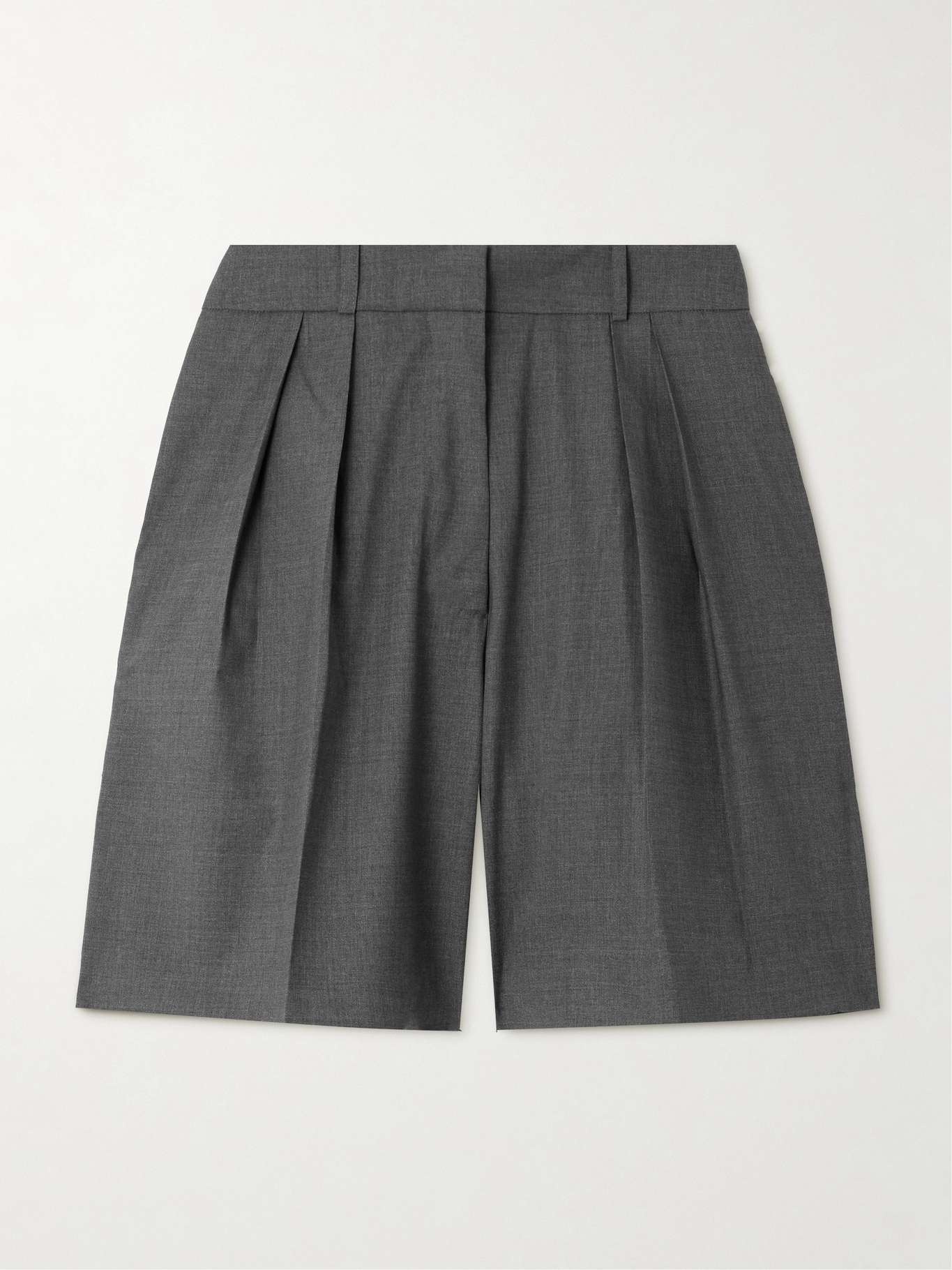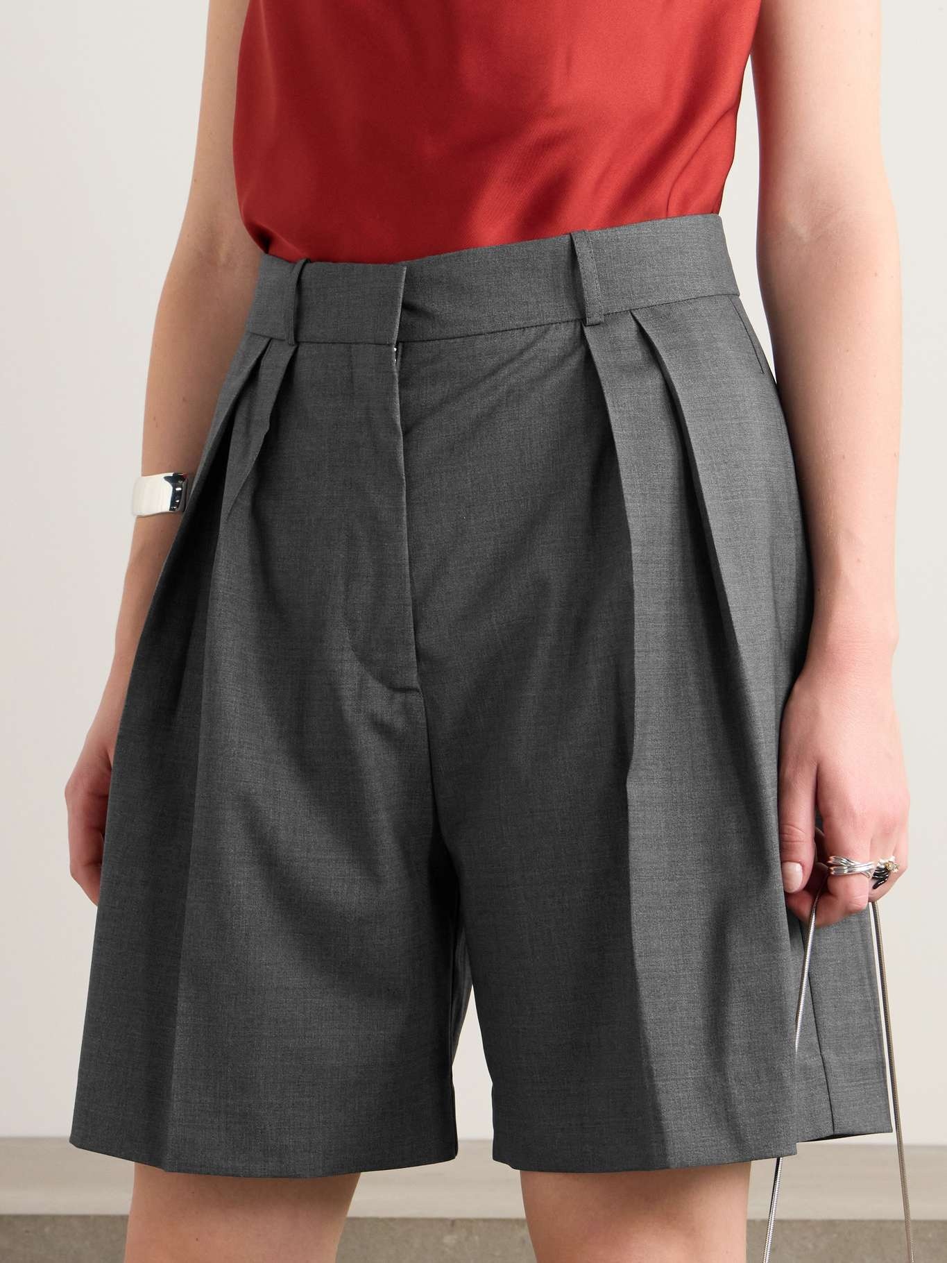 EDITORS'NOTES RÓHE's shorts capture the label's effortless approach to tailoring. Made from wool-blend, they sit high on the waist and have a wide-leg shape enhanced by neat pleats. Thread a slim belt through the loops. SIZE & FIT Model measurements: - Fits true to size, take your normal size - High-rise, designed for a boxy fit - Mid-weight, non-stretchy fabric - Model is 180cm/ 5'11" and is wearing a FR 36 - Bust: 78cm/ 31" - Waist: 65cm/ 25.5" - Hip: 90cm/ 35.5" DETAILS & CARE - Dark-grey wool-blend - Concealed hook and zip fastening at front - 98% wool, 2% elastane - Dry clean