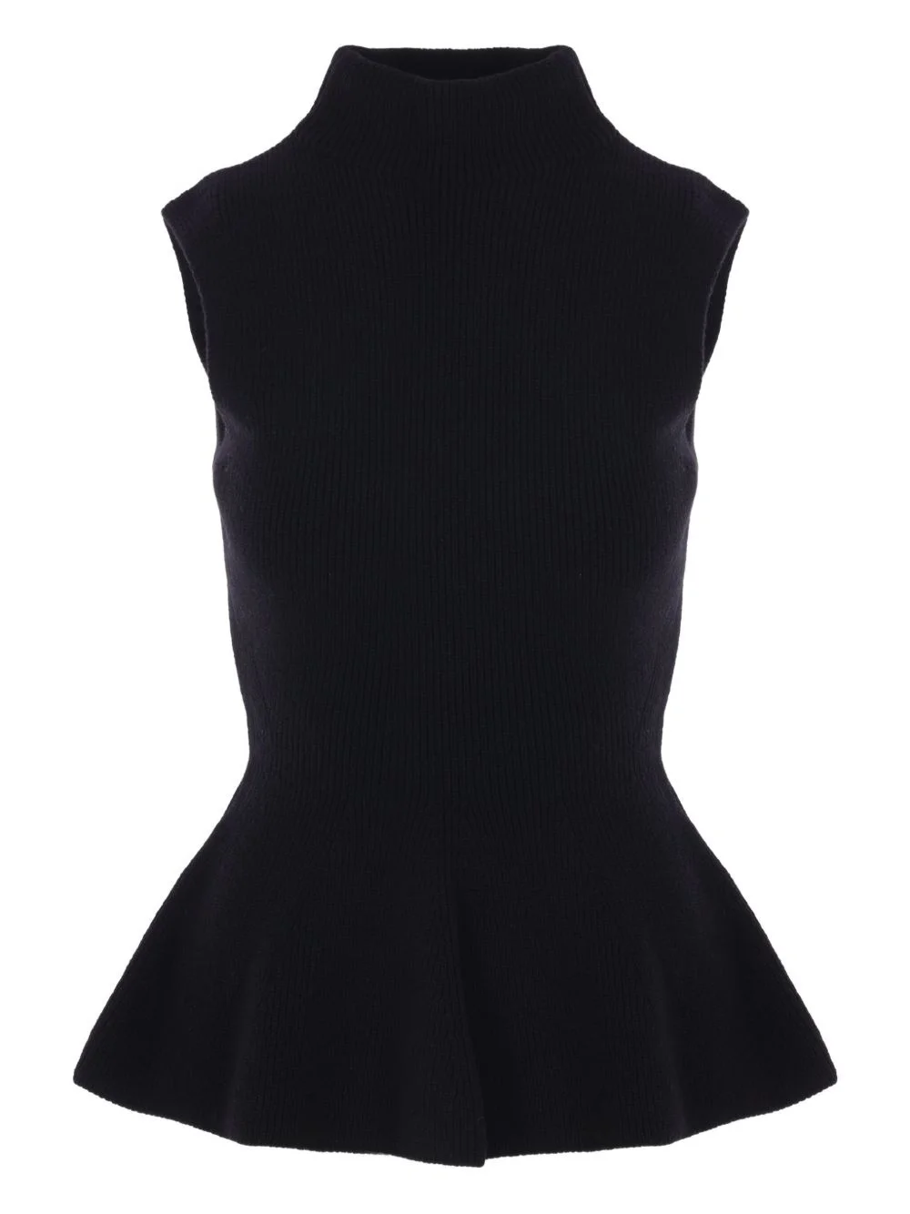 high-neck top Highlights - Black - Ribbed knit - Wool-blend - Sleeveless - High neck - Peplum hem Made in Italy Composition Wool 70%, Cashmere 30% Washing instructions Read Manufacturer Guidelines