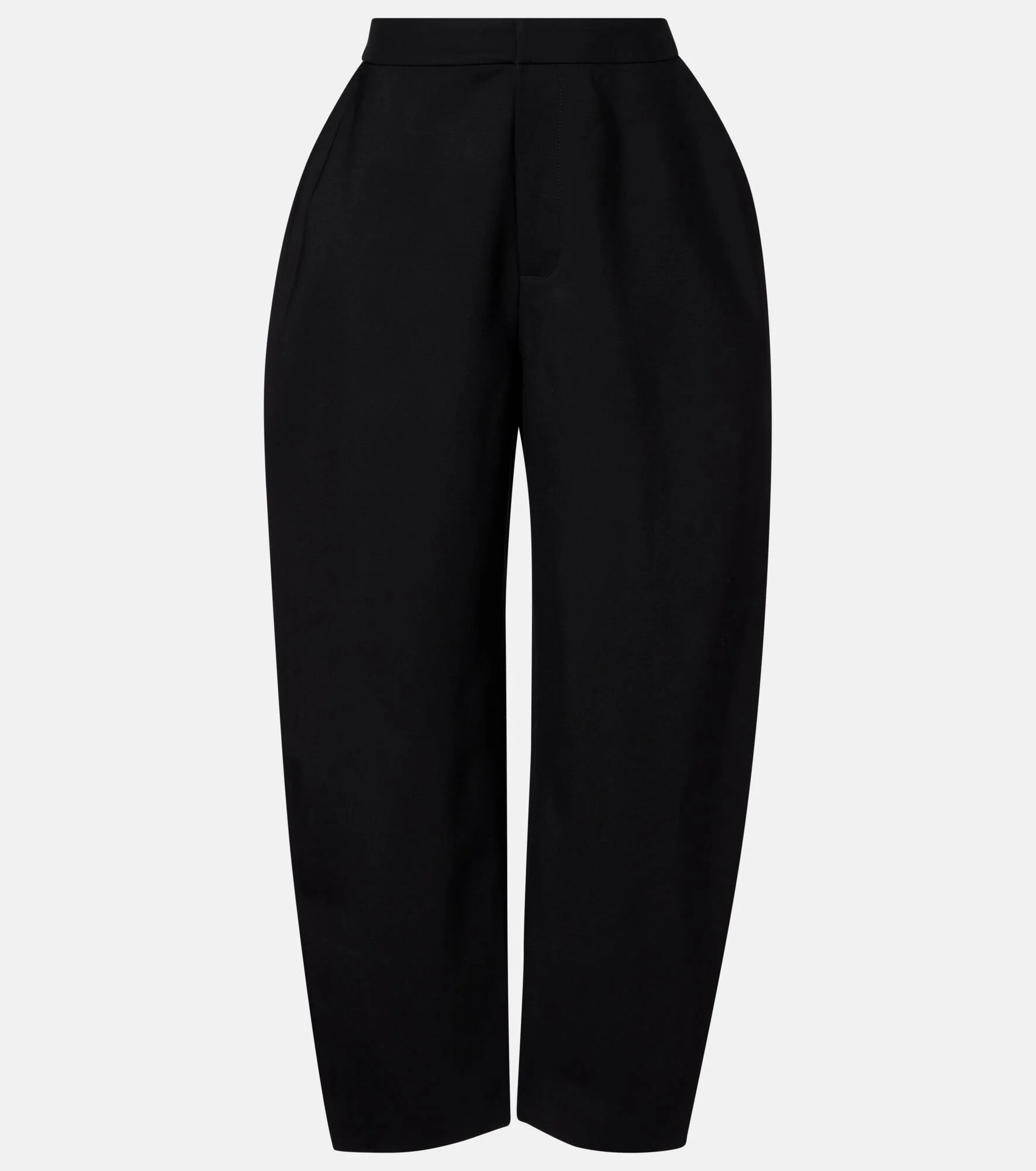 Reach for these barrel-leg pants from Rohe when you need a chic and sophisticated option. Made from slightly structured crepe, the pair plays with proportion and silhouette with its shapely, curved, and high-rise design. Product Details - Material: 97% viscose, 3% elastane - Care instructions: dry clean - Made in Lithuania - Designer color name: Black - Item color: black - Pockets: back pockets - Closure: zip and button fastening - Item number: P01103204 Size & Fit - True to size - Non-stretchy fabric - Tapered leg - The model seen in the picture is 178cm-5'10" and wearing a size FR 34