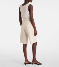 Look to Rohe for trend-defying pieces, designed in the heart of Amsterdam. These shorts are crafted from denim with unfinished hems that fall below the knees. Product Details - Material: 100% cotton - Care instructions: machine wash at 30 degrees - Made in Tunisia - Designer color name: Ecru - Item color: beige - Closure: zip and button fastening - Pockets: five pockets - Belt loops - Item number: P01062409 Size & Fit - True to size - Non-stretchy fabric - Wide-leg - The model seen in the picture is 178cm-5'10" and wearing a size FR 34