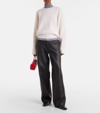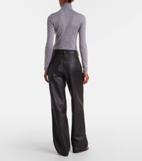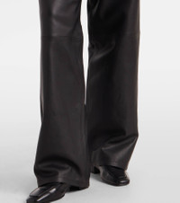 Rohe favors a multifaceted approach to design, infusing every collection with elements of Dutch art and architecture. Stitched from panels of buttery soft nappa leather, these pants sit high on the hips and feature a classic wide-leg silhouette. Product Details - Material: 100% lamb leather - Care instructions: specialist clean - Made in Turkey - Designer color name: Black - Item color: black - Pocket lining: 65% polyester, 35% cotton - Hardware color: silver - Belt loops - Pockets: five pockets - Closure: zipper fly, button fastening - Contains non-textile parts of animal origin - Item number: P01103217 Size & Fit - True to size - Non-stretchy fabric - Wide-leg - High-waisted - The model seen in the picture is 178cm-5'10" and wearing a size FR 34