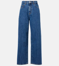 Product Details - Material: 100% cotton - Care instructions: machine wash at 30 degrees - Made in Tunisia - Designer color name: Mid Denim Blue - Item color: blue - Closure: zip and button fastening - Belt loops - Pockets: five pockets - High-rise - Fit: wide-leg - Item number: P01040307 Size & Fit - Fits large to size - we recommend trying one size smaller - Non-stretchy fabric - Wide-leg - High-rise - The model seen in the picture is 178cm-5'10" and wearing a size FR 34