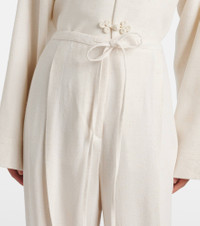 These Rohe pants are an ode to understated style for everyday ease. Crafted from a crisp, lightweight fabric, the high-rise design comes in a wide-leg silhouette with a practical drawstring waistband for comfort. Product Details - Material: 95% viscose, 5% silk - Care instructions: dry clean - Made in Portugal - Designer color name: Winter White - Item color: white - Pockets: side slit pockets, back pockets - Drawstring waist - Closure: zip and button fastening - Item number: P01103209 Size & Fit - True to size - Adjustable at the waist - Non-stretchy fabric - Wide-leg - The model seen in the picture is 178cm-5'10" and wearing a size FR 34