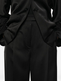high-waist satin trousers Highlights Imported Composition Fabric 100% SIZE & FIT Model measurements Height 5 ft 10 in(1.77 m) Bust/Chest 32.28 in(82 cm) Hips 35.03 in(89 cm) Waist 25.19 in(64 cm)