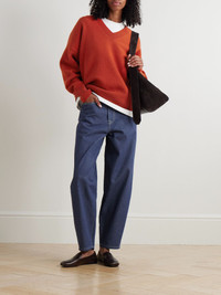 You'll love how joyfully soft ROHE's sweater feels everytime you take it from your drawer. It's knitted from wool-blend in a cool, slouchy fit. Size & Fit - Fits true to size, take your normal size - Designed for a slightly loose fit - Mid-weight knit - Model is 177cm/ 5'10" and is wearing a FR 36 Model measurements: - Bust: 77cm/ 30.5" - Waist: 62cm/ 24.5" - Hip: 88cm/ 34.5" Details & Care - Burnt-orange wool-blend - Slips on - 97% wool, 3% LYCRA® - Designer color: Burnt Orange