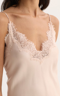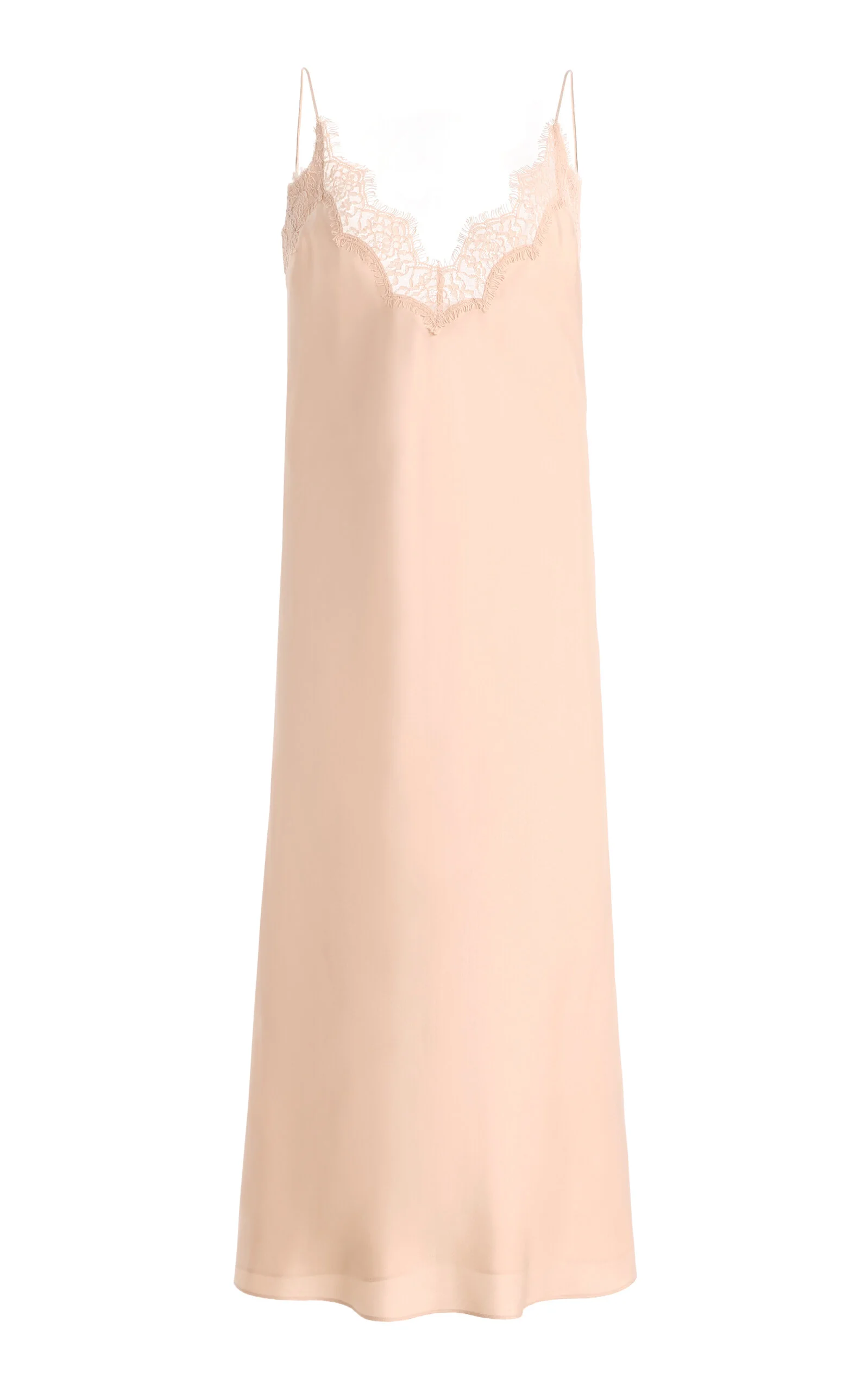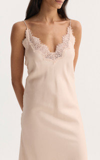 Amsterdam-based atelier Rohe offers exceptionally crafted staples in pair-with-anything neutrals that are as well-constructed as they are timeless. A lightweight silk camisole slip dress featuring delicate lace detailing along the neckline and back, finished with elongated adjustable straps that fall down the back of the garment. PRODUCT DETAILS - Resort '26 - Zip fastening - Composition: 100% silk - Designer color: Rose - Dry clean - Imported