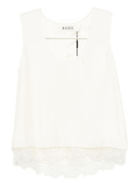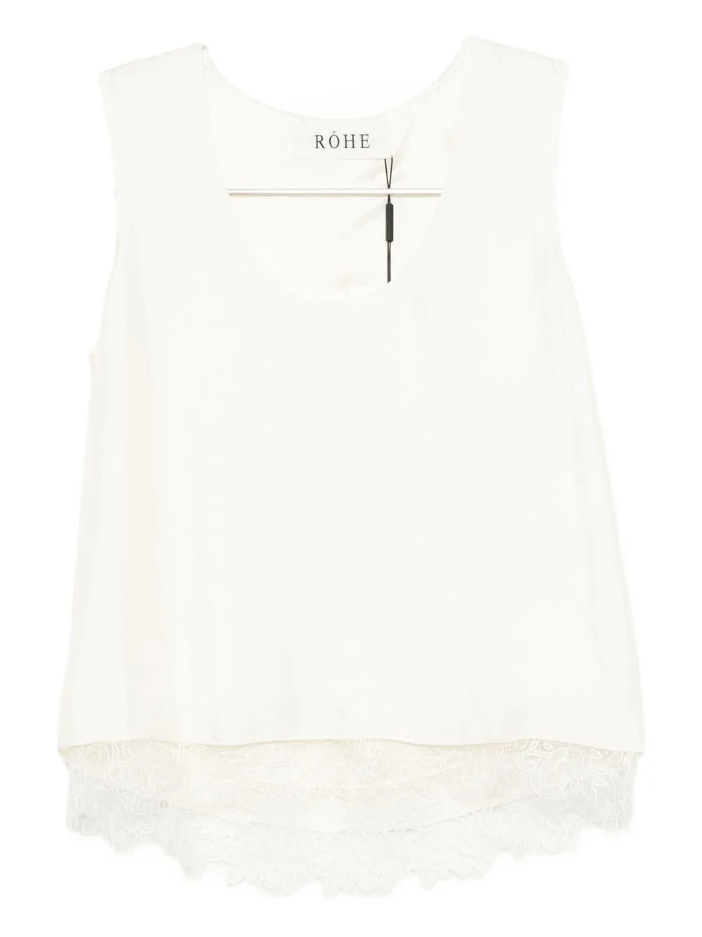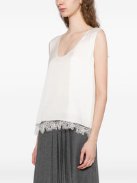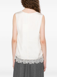 lace-trimmed silk top Highlights - Off-white - Scoop neck - Sleeveless - Lace embroidery Imported Composition Lining: Viscose 100% Outer: Silk 100% SIZE & FIT Model measurements Height 5 ft 10 in(1.79 m) Bust/Chest 29.52 in(75 cm) Hips 35.03 in(89 cm) Waist 24.01 in(61 cm) FittingInformation Designed for a relaxed fit, this piece allows for comfort and movement when worn Made from a lightweight non-stretch fabric Washing instructions Dry Clean Only