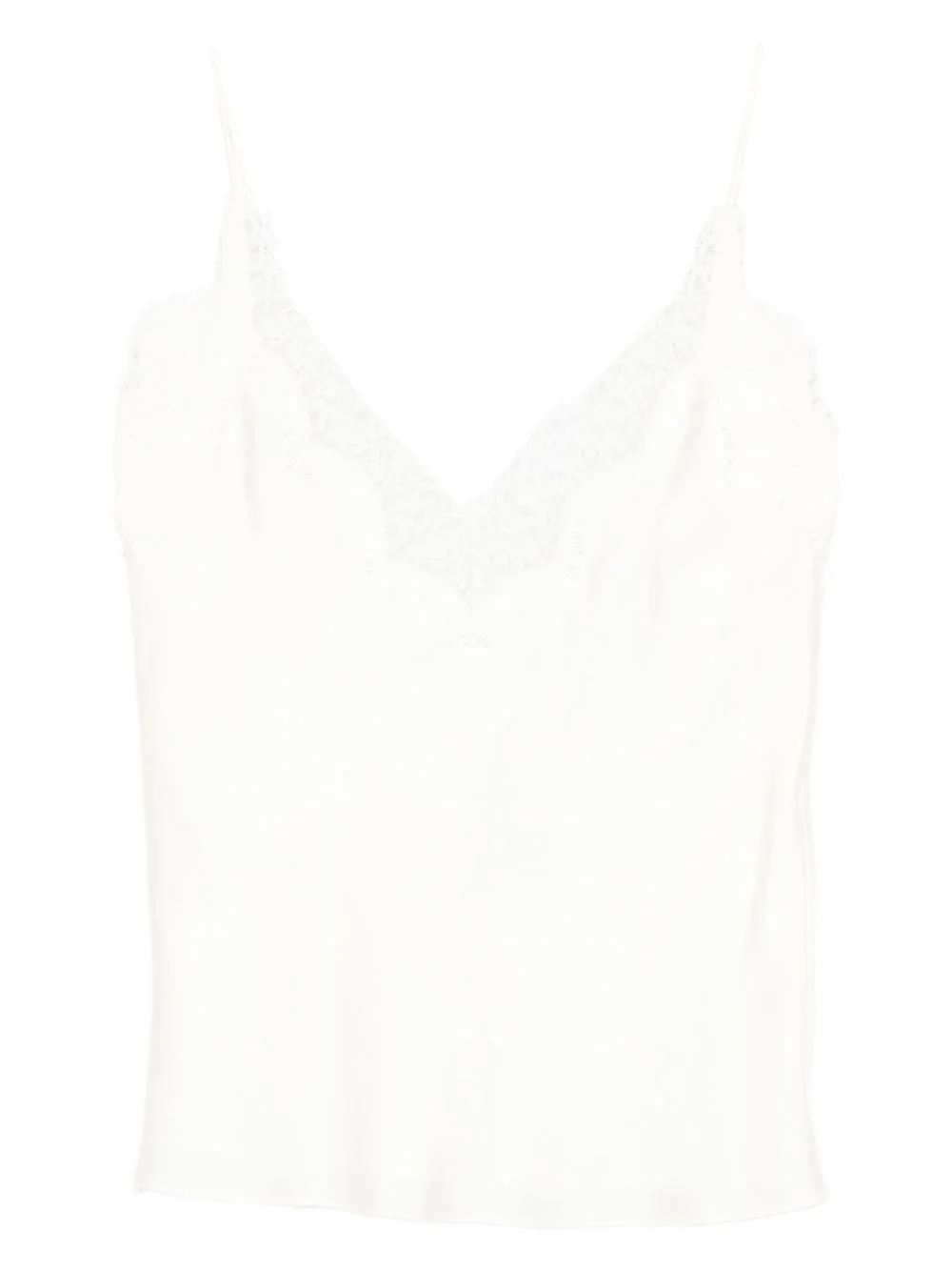 lace V-neck top Highlights - Beige - Lace trim - V-neck - Adjustable straps - Side tie fastening - Sleeveless Imported Composition Outer: Silk 100%, Nylon 85% Lining: Viscose 100%, Cotton 15% SIZE & FIT Model measurements Height 5 ft 10 in(1.79 m) Bust/Chest 33.46 in(85 cm) Hips 35.43 in(90 cm) Waist 24.01 in(61 cm) Washing instructions Dry Clean Only