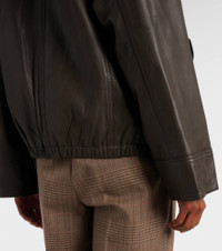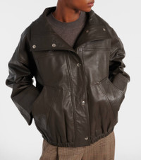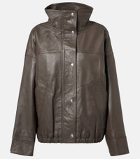 Rohe sets out to create minimalist staples that defy trends and seasons. Crafted from soft leather, this jacket is shaped into a relaxed silhouette with a stand collar, elasticated hem, and wide sleeves. Product Details - Material: 100% sheep leather - Care instructions: specialist clean - Made in India - Designer color name: Earth - Item color: brown - Lining: 100% polyester - Hardware color: silver - Pockets: slant pockets - Closure: snap-buttoned front - Hem: elasticated - Contains non-textile parts of animal origin - Item number: P01103229 Size & Fit - True to size - Dropped shoulders - Designed for a loose fit - Elasticated hem - Non-stretchy fabric - Falls below the hip - Height of model is 180cm-71" and wears a size FR 34