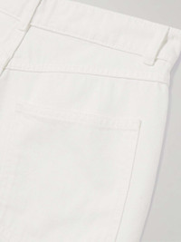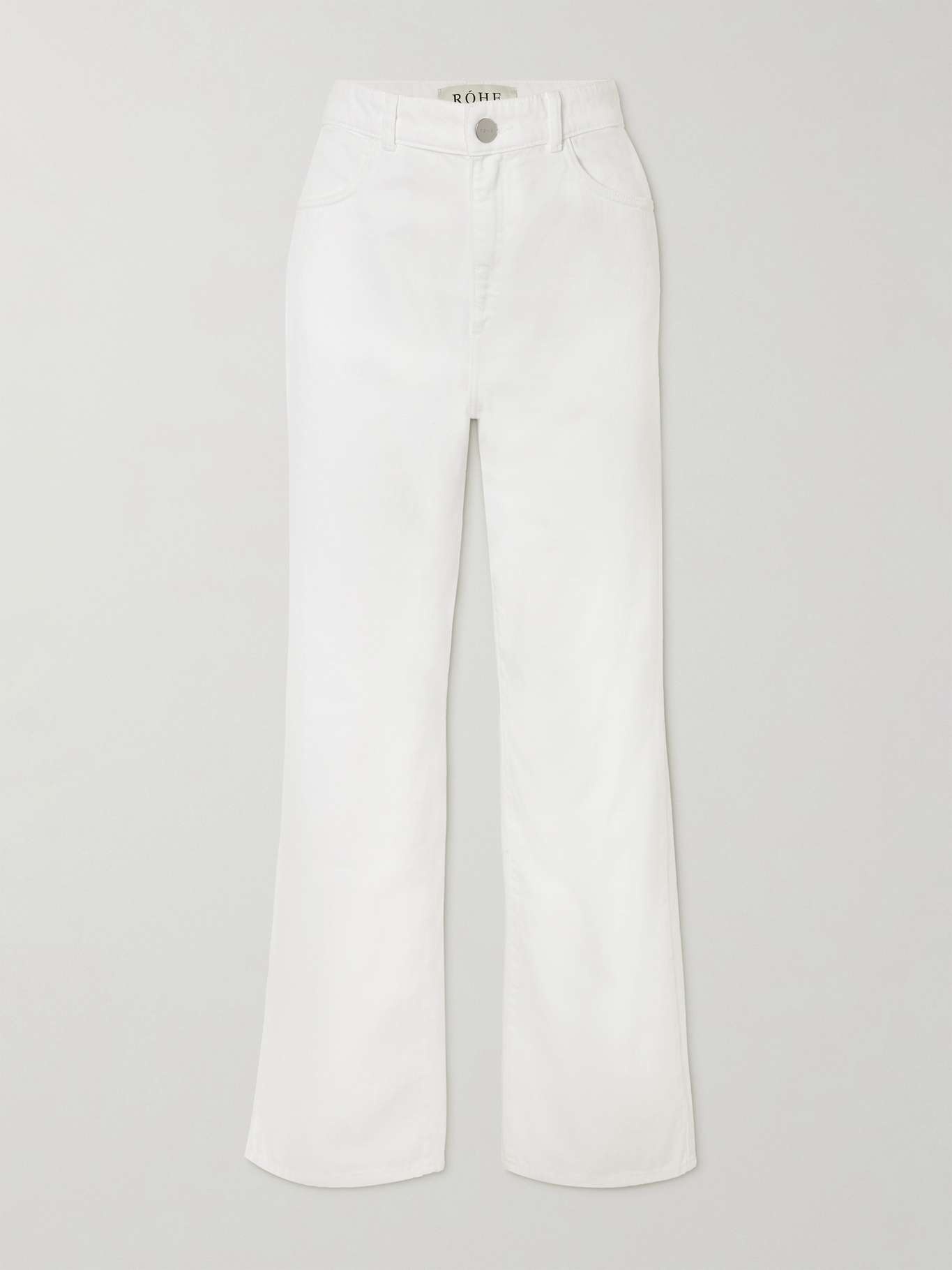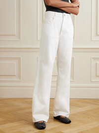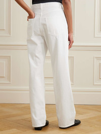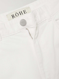 Embodied by an "infinite dialogue of quiet confidence," ROHE designs understated pieces that complement your existing wardrobe. These jeans are cut from denim in an 'Optic White' shade and have classic straight legs. Style yours with a crisp shirt or an oversized sweater, tucking it into the mid-rise waistband. Size & Fit - Fits true to size, take your normal size - High-rise, cut for a straight-leg fit - Mid-weight, non-stretchy fabric - Size FR 34 jeans have an inside leg of 30.5"/ 78cm - Model is 175cm/ 5'9" and is wearing a FR 34 Model measurements: - Bust: 76cm/ 30" - Waist: 64cm/ 25" - Hip: 86cm/ 34" Details & Care - White denim - Button and concealed zip fastening at front - 100% cotton - Dry clean - Designer color: Optic White