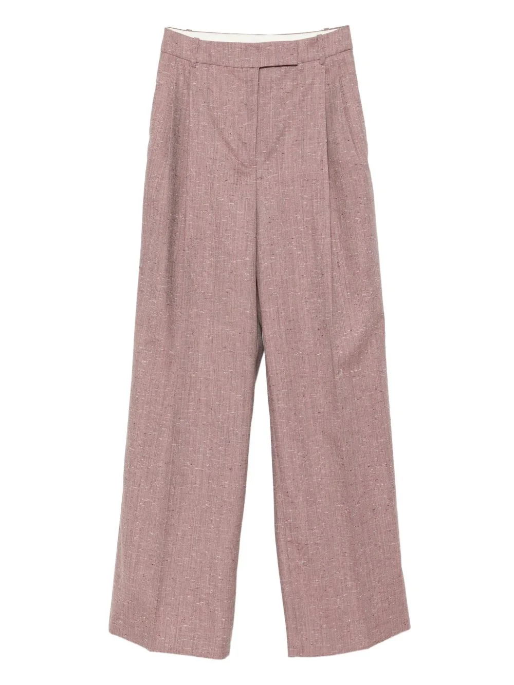 mid-waist tweed trousers Highlights - Blush pink - Concealed front button, hook and zip fastening - Two rear welt pockets - Belt loops Imported Composition Outer: Virgin Wool 82%, Viscose 9%, Polyester 9% Lining: Viscose 100% Washing instructions Dry Clean Only