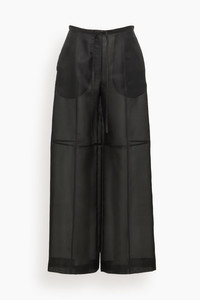 The Rohe Organza Silk Parachute Trousers are perfect for a warm summer day. This organza pants feature a flowing silhouette with a semi-sheer look. Wear yours with a tank and sandals. FIT DESCRIPTION MODEL MEASUREMENTS - Fits true to size, take your normal size - Wide leg - Relaxed fit - High rise - Drawstring waistband - Semi-sheer - Silk organza - 100% silk - Reed is wearing a size 34/ 2 US - Bust: 34” - Waist: 25” - Hips: 35” - Height: 5’11”
