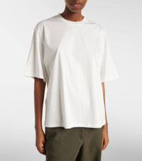 Exude timeless elegance in this T-shirt from Rohe. Crafted in Italy from a soft cotton-blend, the classic design boasts a relaxed fit and oversized silhouette. Product Details - Material: 64% cotton, 30% modal, 6% silk - Care instructions: dry clean - Made in Italy - Color: white - Designer color name: Off White - Collar: crewneck - Item number: P01140022 Size & Fit - True to size - Oversized - Stretchy fabric - Falls below the hip - The model seen in the picture is 178cm-5'10" and wearing a size FR 34