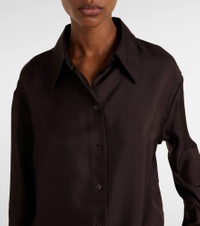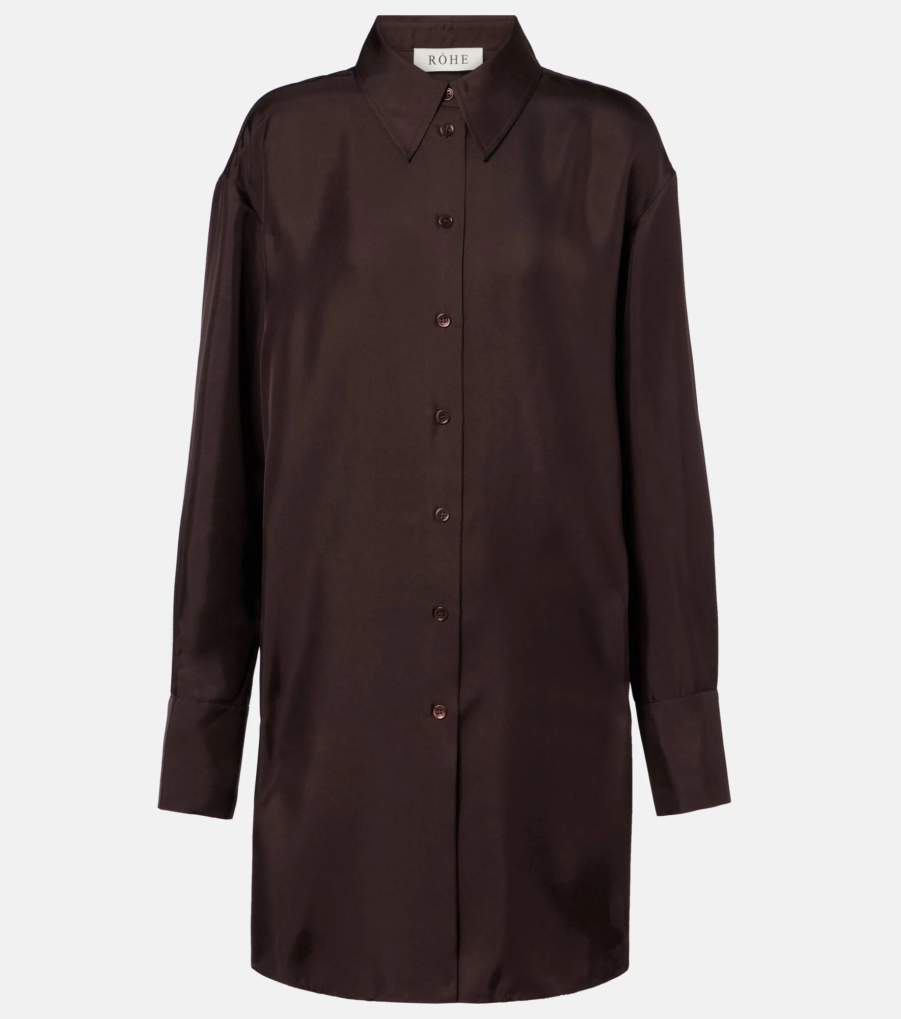Rohe favors a multifaceted approach to design, infusing every collection with elements of Dutch art and architecture. Cut from featherweight silk, this button-down shirt is cut to a longline silhouette for an oversized look. Product Details - Material: 100% silk - Care instructions: dry clean - Made in Italy - Designer color name: Mahogany - Item color: brown - Closure: buttoned front - Collar: classic (Straight point) - Cuff: one button - Side slits - Item number: P01073318 Size & Fit - True to size - Dropped shoulders - Oversized - Non-stretchy fabric - Falls below the hip - The model seen in the picture is 178cm-5'10" and wearing a size FR 34