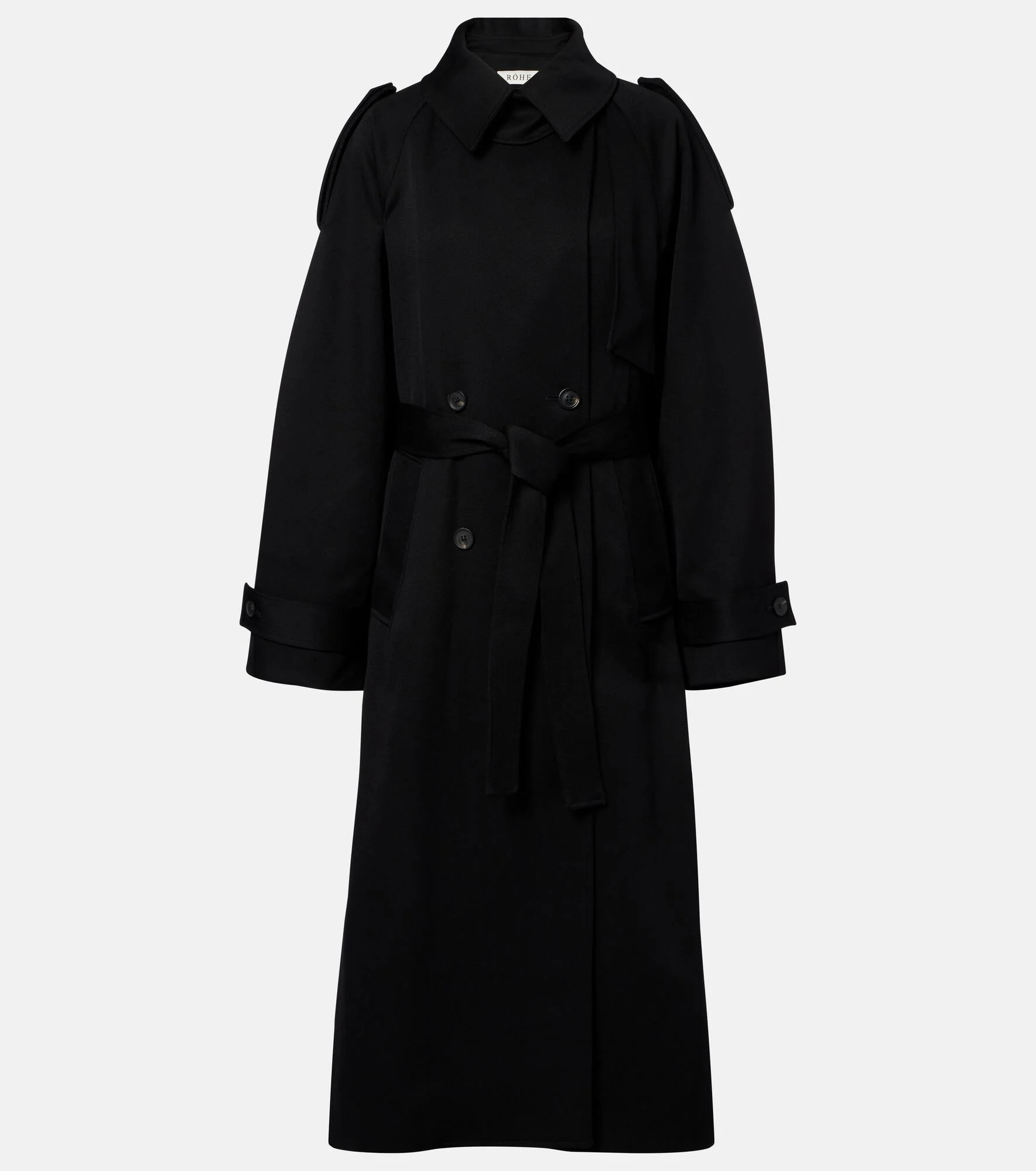 This coat from Rohe is a refined choice for when temperatures drop. Crafted from pure virgin wool, this piece features a double-breasted silhouette that is slightly oversized. Product Details - Material: 100% virgin wool - Care instructions: dry clean - Made in Bulgaria - Designer color name: Black - Item color: black - Lining: 100% viscose - Closure: double-breasted - Pockets: welt pockets - Cuff: buttoned - Self-tie belt - Item number: P01073342 Size & Fit - True to size - Loose fit, comes with belt - Non-stretchy fabric - The model seen in the picture is 178cm-5'10" and wearing a size FR 34