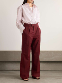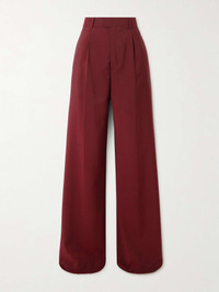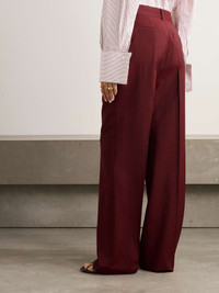 EDITORS'NOTES Everything in RÓHE'S collections is designed with timelessness and versatility in mind. These trousers are tailored from wool and mohair-blend with wide legs accentuated with front pleats. Wear yours with a crisp shirt or tank. SIZE & FIT Model measurements: - Fits true to size, take your normal size - High-rise, cut for a wide-leg fit - Long in length, may wish to alter - Mid-weight, non-stretchy fabric - Model is 175cm/ 5'9" and is wearing a FR 36 - Bust: 78cm/ 31" - Waist: 62cm/ 24.5" - Hip: 92cm/ 36" DETAILS & CARE - Burgundy wool and mohair-blend - Concealed hook and zip fastening at front - 84% virgin wool, 16% mohair - Dry clean