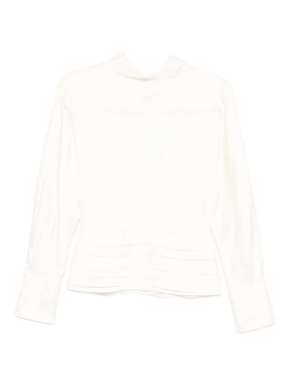 pleated top Highlights - Beige - Pleated detailing - Mock neck - Long sleeves - Buttoned cuffs Imported Composition Silk 100% SIZE & FIT Model measurements Height 5 ft 10 in(1.79 m) Bust/Chest 33.46 in(85 cm) Hips 35.43 in(90 cm) Waist 24.01 in(61 cm) Washing instructions Dry Clean Only