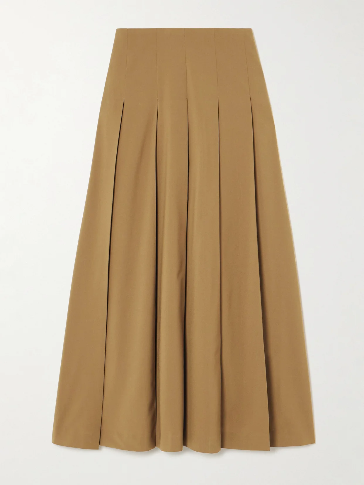 ROHE is known for its quietly refined tailoring and architectural approach to wardrobe staples. This midi skirt is made from wool-blend twill and finished with sharp pleats that give it movement without losing shape. Pair yours with a loose sweater or crisp shirt.