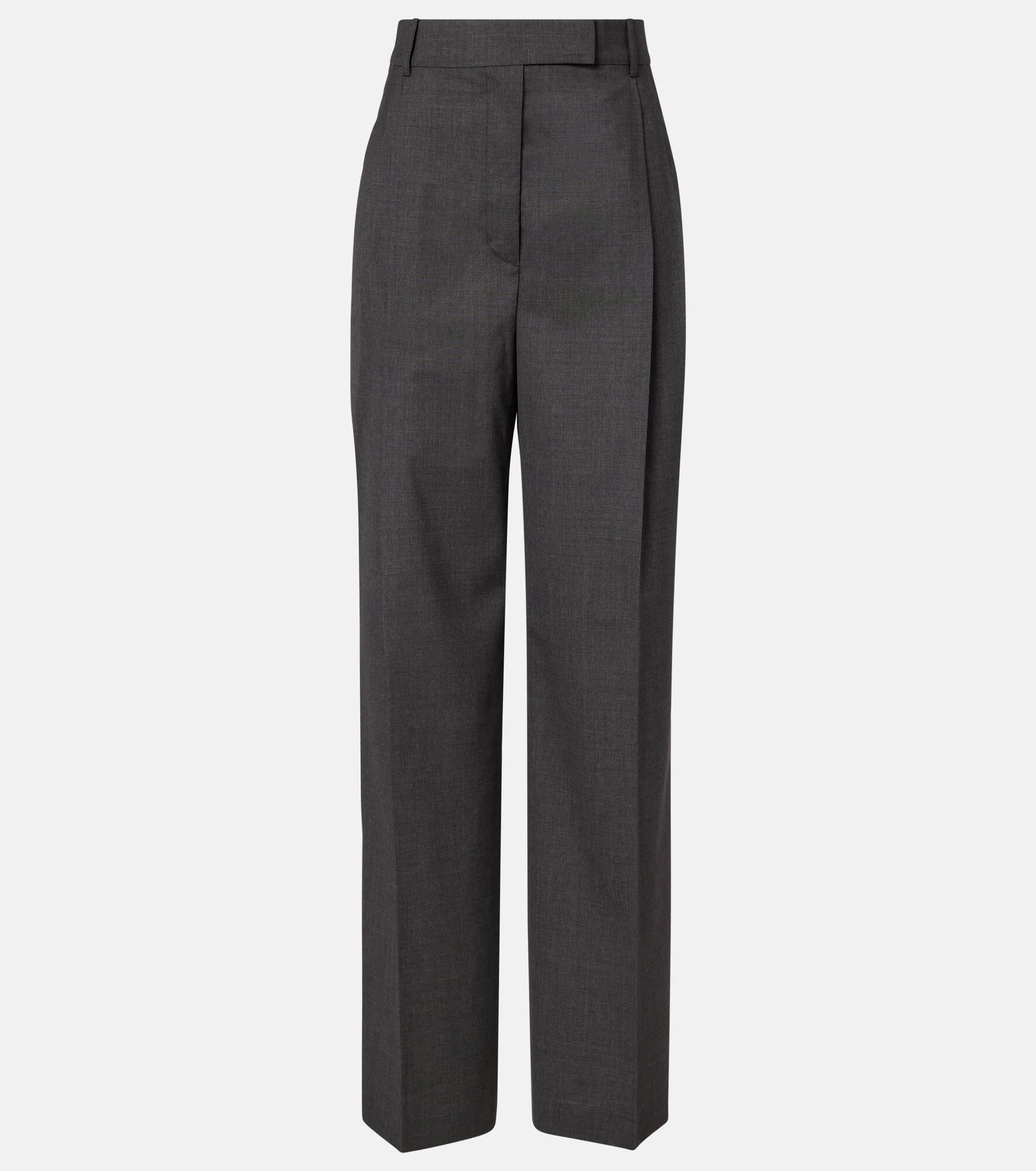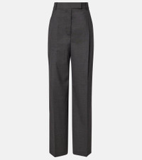 Based in Amsterdam, Rohe creates minimalist staples that transcend trends and seasons. Designed with a high-waist silhouette and practical pockets, these wool suit pants feature front pleats for a tailored finish. Product Details - Material: 98% wool, 2% elastane - Care instructions: dry clean - Made in Portugal - Designer color name: Dark Grey Melange - Item color: gray - Belt loops - Pockets: side slit pockets, back pockets - Closure: zipper, hook fastening - Item number: P01103192 Size & Fit - True to size - Non-stretchy fabric - Wide-leg - The model seen in the picture is 178cm-5'10" and wearing a size FR 34