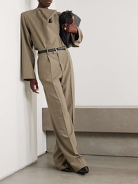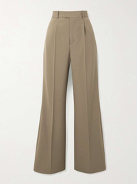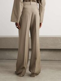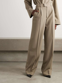 EDITORS'NOTES ROHE's pants are smart and versatile, so you'll feel confident wearing them for a variety of different plans. They're made from beige wool and have a high waist and pressed creases through the wide, pooling legs for an elongating effect. Large to size. See Size & Fit notes. SIZE & FIT Model measurements: - Fits large to size, take one size smaller than normal - High-rise, tailored for a wide-leg fit - Mid-weight, non-stretchy fabric - Model is 177cm/ 5'10", normally wears a FR 36 and is wearing a FR 34 - Bust: 79cm/ 31" - Waist: 61cm/ 24" - Hip: 89cm/ 35" DETAILS & CARE - Beige wool - Concealed hook, button and zip fastening at front - 100% virgin wool - Dry clean