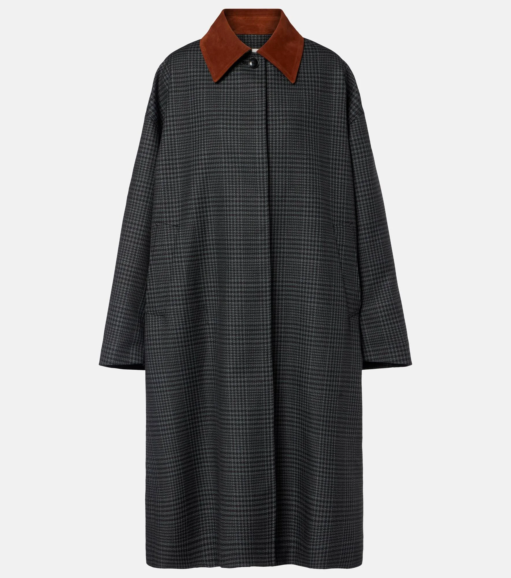Rohe sets out to create minimalist staples that defy trends and seasons. Detailed with a Prince of Wales check, this voluminous coat features a suede collar and concealed buttoned front. Product Details - Material: 100% virgin wool - Care instructions: dry clean - Made in Portugal - Color: black - Designer color name: Black/Grey Check - Item color: black, gray - Lining: 100% viscose - Trim: 100% leather (suede) - Contains non-textile parts of animal origin - Closure: concealed button placket - Long vent - Pockets: welt pockets, internal pocket - Item number: P01139996 Size & Fit - True to size - For a closer fit, we recommend taking one size down - Dropped shoulders - Oversized - Non-stretchy fabric - The model seen in the picture is 178cm-5'10" and wearing a size FR 34