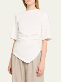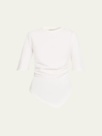 Rohe twisted cotton T-shirt Crew neckline Short sleeves Draped fit Asymmetric hem Pullover style Cotton Unlined Hand wash or dry clean Imported Online Inquiries: BGS21_T6STP| Store Inquiries: #5029764