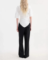 The Reinvented Twisted T-Shirt in White by Rohe is a sculptural update to a classic staple featuring a twisted asymmetrical drape that contours the waist, and elbow-length sleeves. - 100% Organic Cotton - The model is 179cm and is wearing a size EU 36