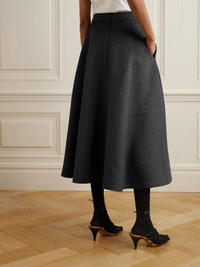 EDITORS'NOTES ROHE's skirt will look so chic for winter styled with knee boots and a sweater. It's made from recycled wool-blend felt and has a full A-line shape that folds softly through its length. SIZE & FIT Model measurements: - Fits true to size, take your normal size - Midi-length, designed to be worn just below the natural waist - Mid-weight, non-stretchy fabric - Model is 175cm/ 5'9" and is wearing a FR 36 - Bust: 81cm/ 32" - Waist: 64cm/ 25" - Hip: 89cm/ 35" DETAILS & CARE - Anthracite recycled wool-blend felt - Concealed hook and zip fastening at back - 75% recycled wool, 25% recycled polyamide - Designer color: Anthracite Melange