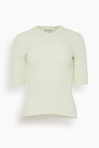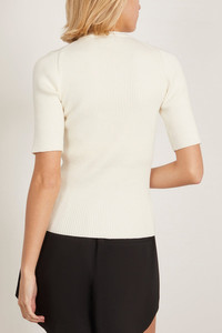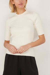 Ribbed Knitted Short Sleeve Top in Off White